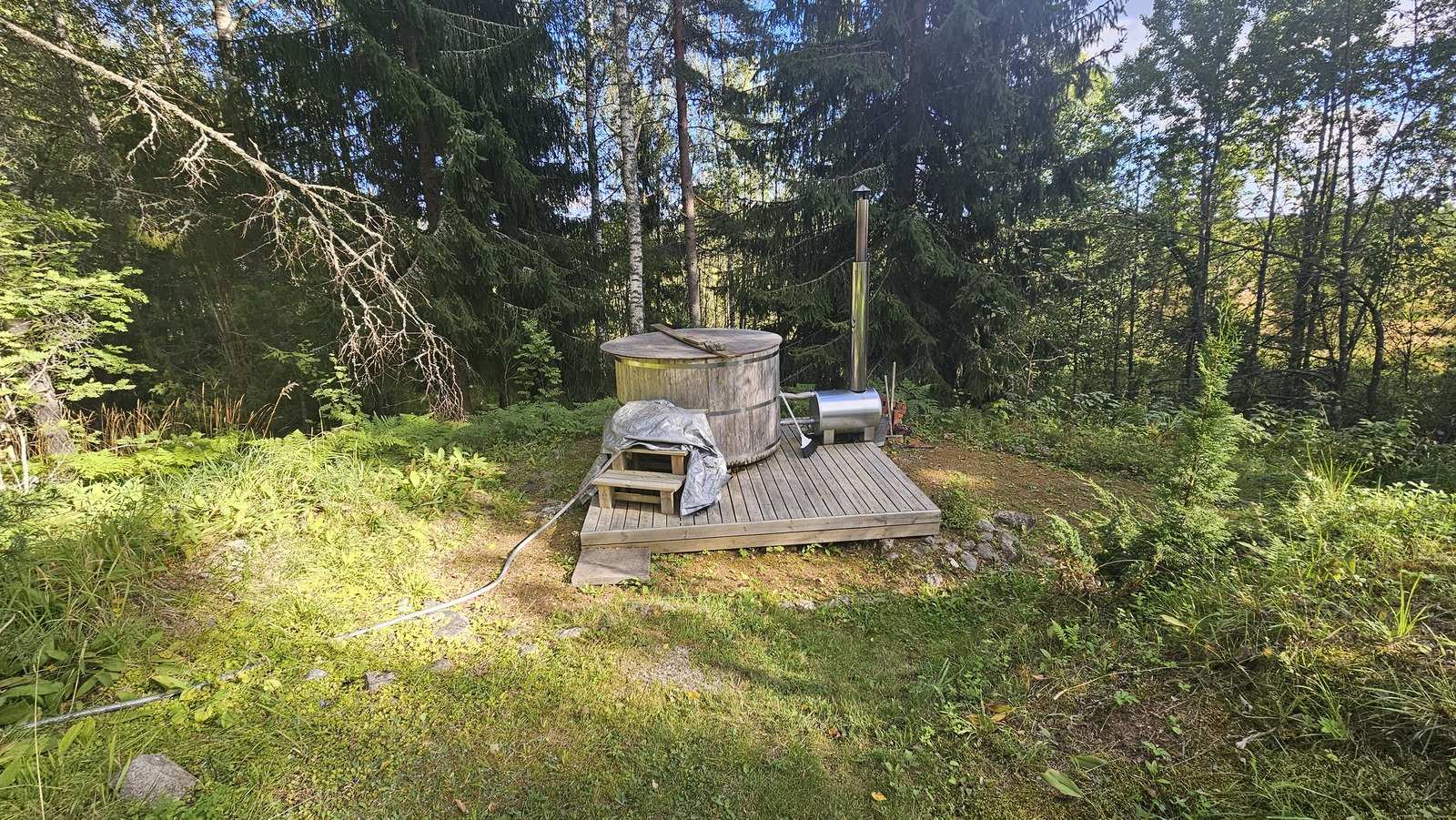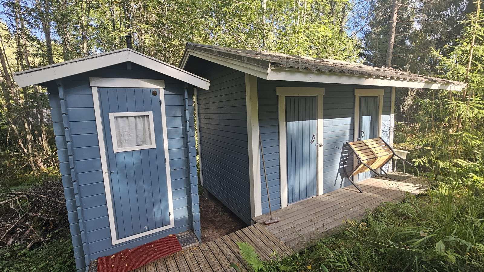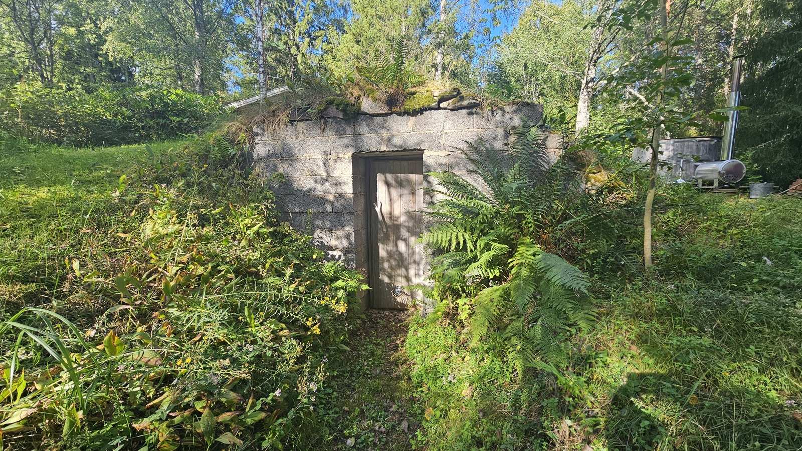 Mökin lisäksi kiinteistöllä on mm. piharakennus-liiteri, maakellari, puulämmitteinen palju yms.