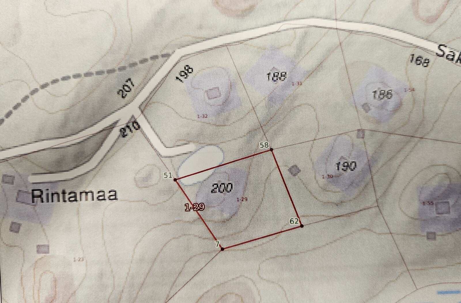 Viihtyisä tontti 3580 m2, joka rajoittuu osin pieneen uimalammikkoon. Porakaivo, sähkö.