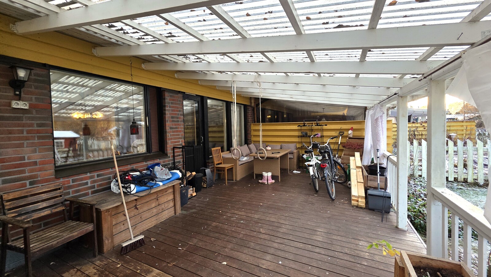 Asunnolla hyvän kokoinen, aidattu oma takapiha ja takapihan puolella myös iso katettu terassi.