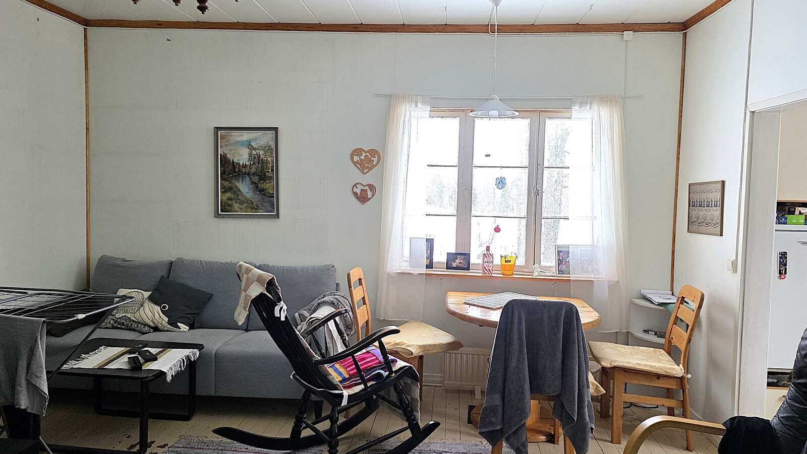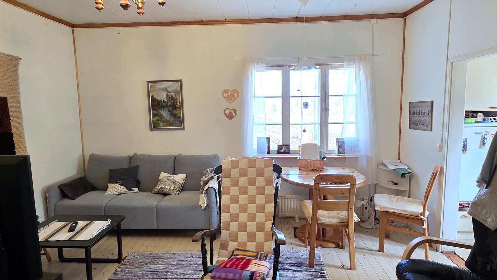 | Olohuone | Olohuoneessa pönttöuuni Seinät: maalattu Lattia: lauta |