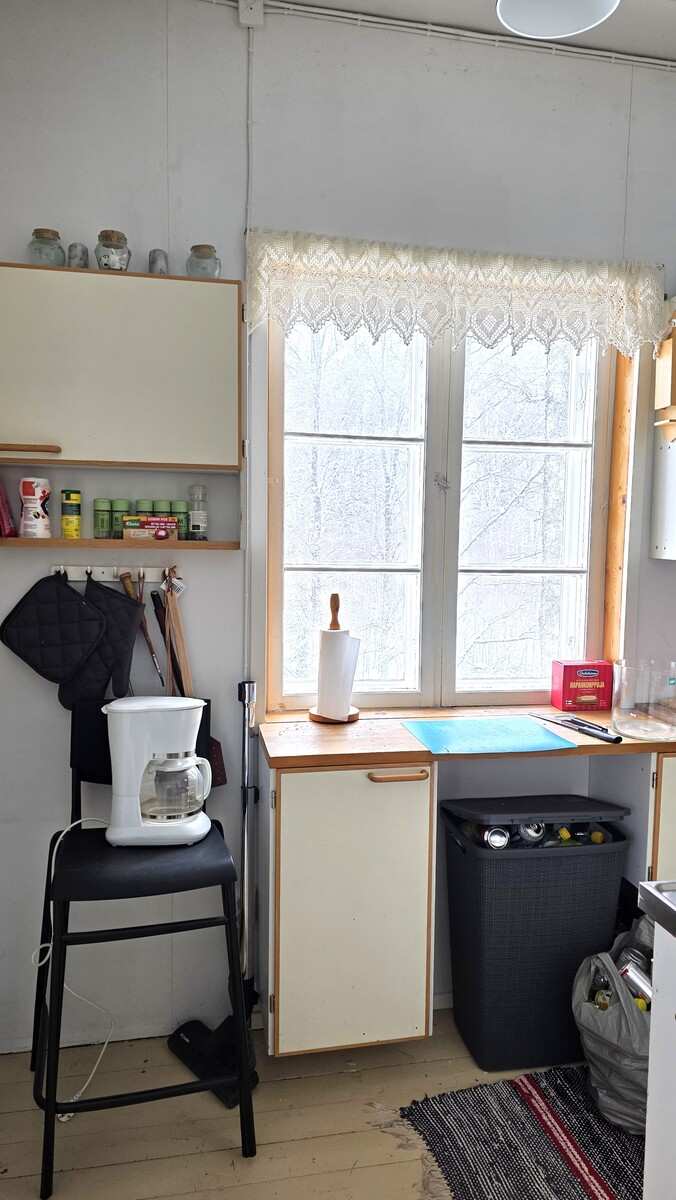 | Makuuhuone | Seinät: maalattu Lattia: lauta |