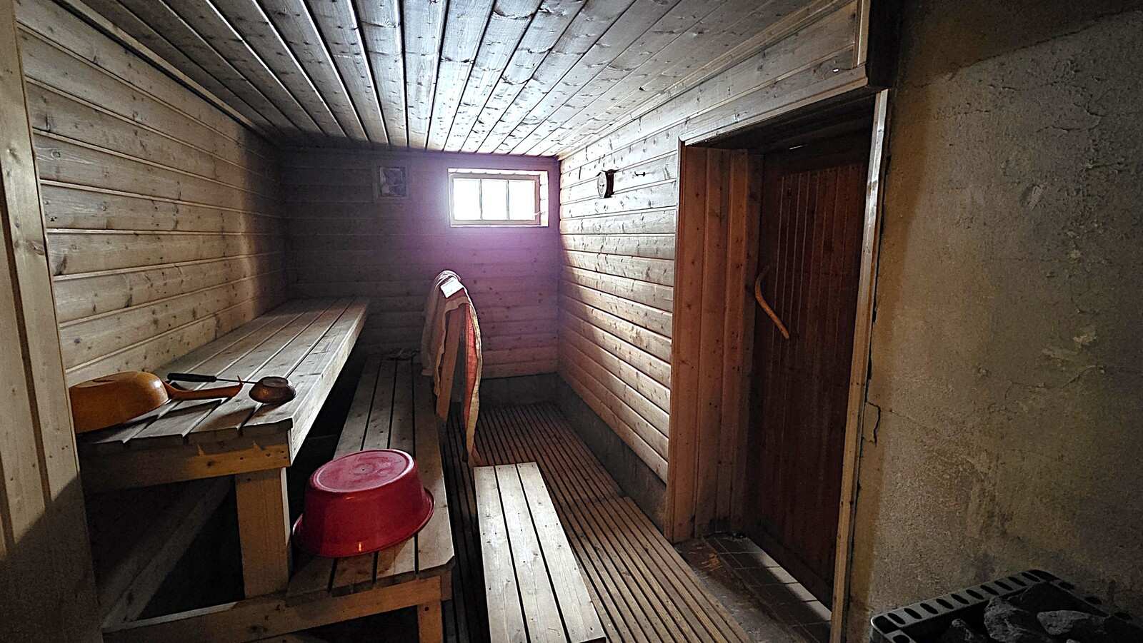 | Saunan pinnat | Seinät: puu Lattia: betoni |