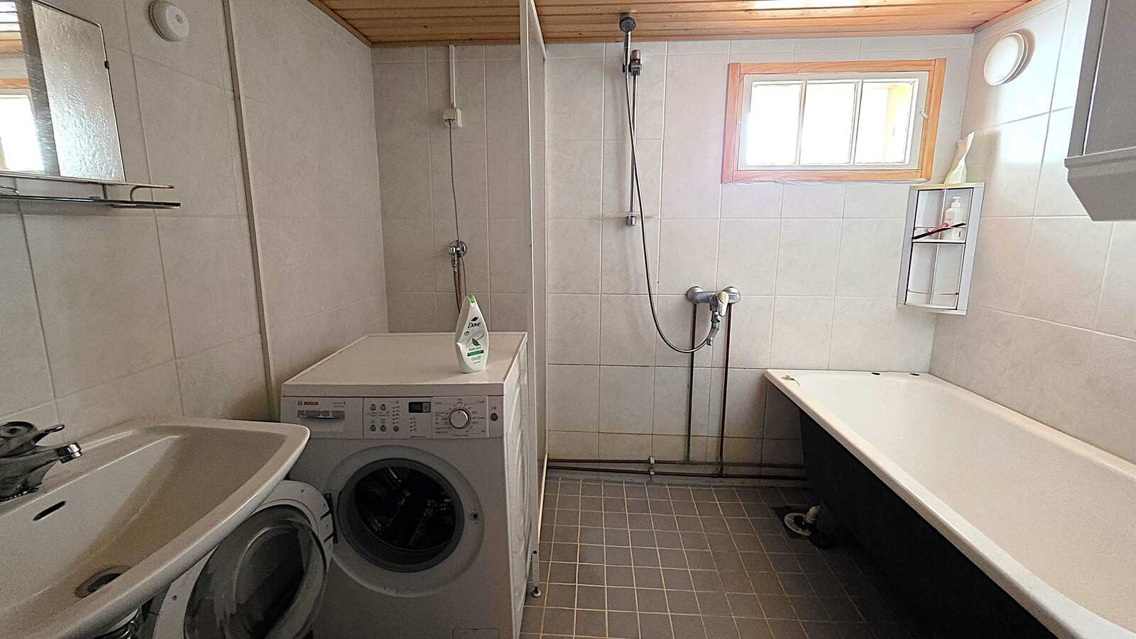 | Kylpyhuone | Varusteet: pesukoneliitäntä, suihku Seinät: kaakeli Lattia: laatta |