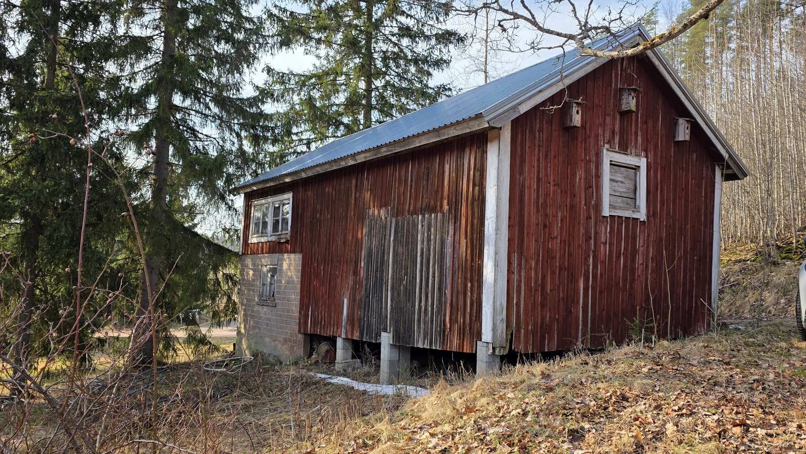 | Rakennusmateriaali | Puu Puurunkoinen, luultavasti purueristeinen rakennus, jossa ulkovuorauksena minerit-levy. |