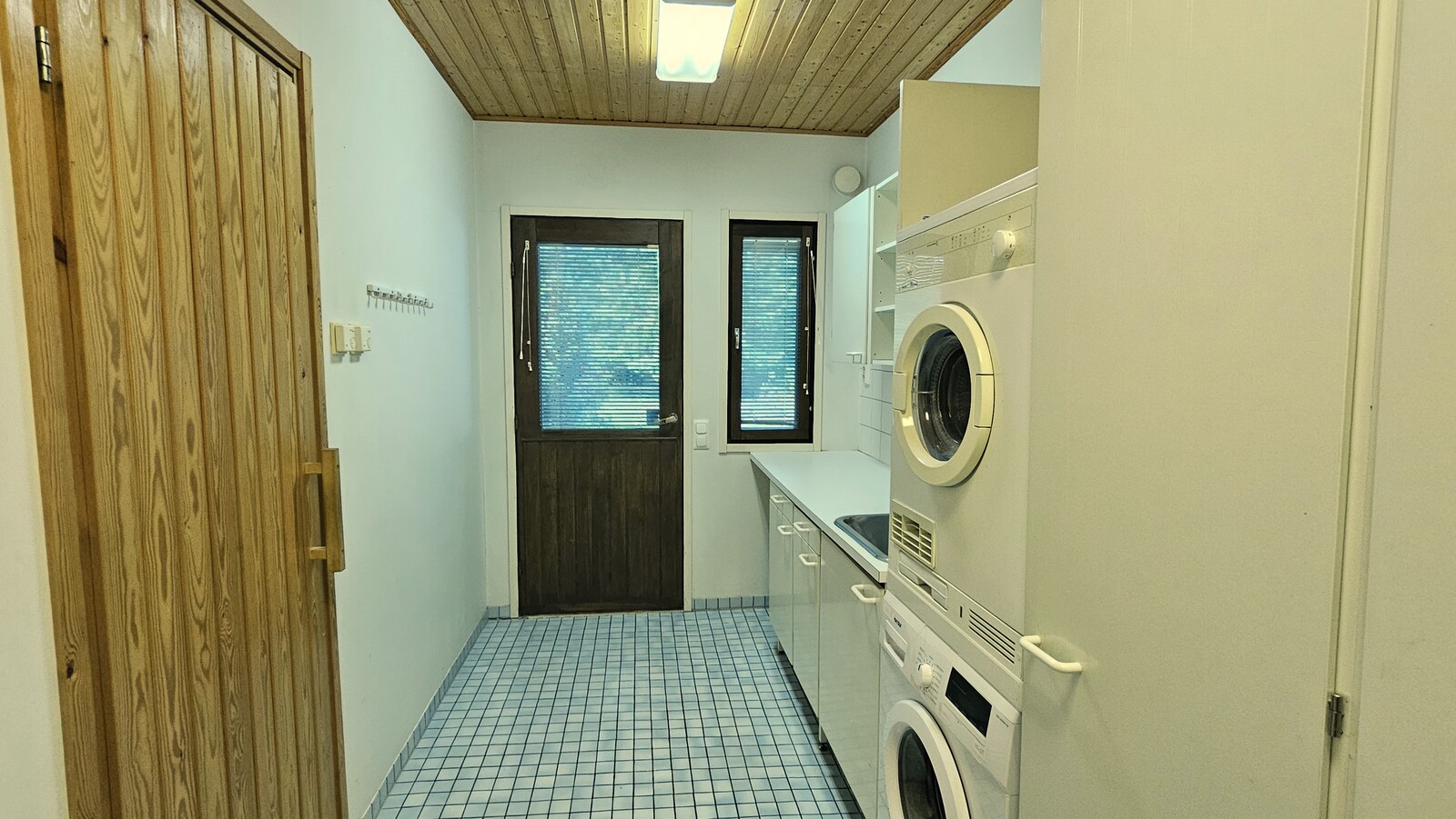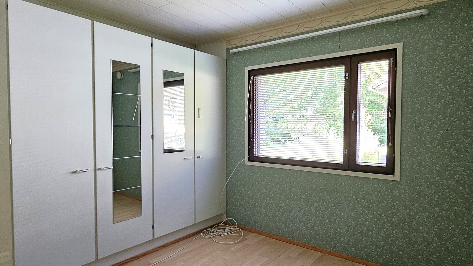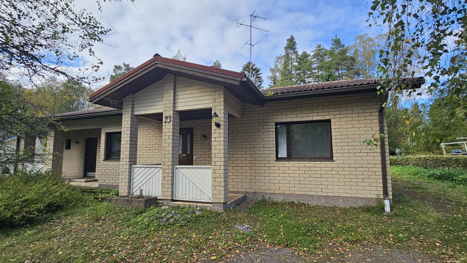 Rauhallisessa Mustion taajamassa 1989-1990 rakennettu, jossa erittäin toimiva pohjaratkaisu: 3mh+avara olohuone + k + khh + kph + sauna + 2wc yms. n. 131m2/152m2.