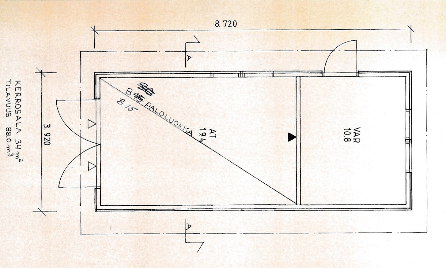 Lisäksi erillinen autotalli-varastorakennus n. 34m2.
