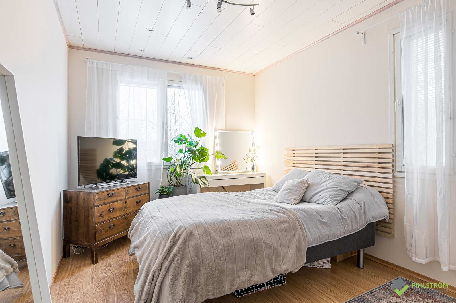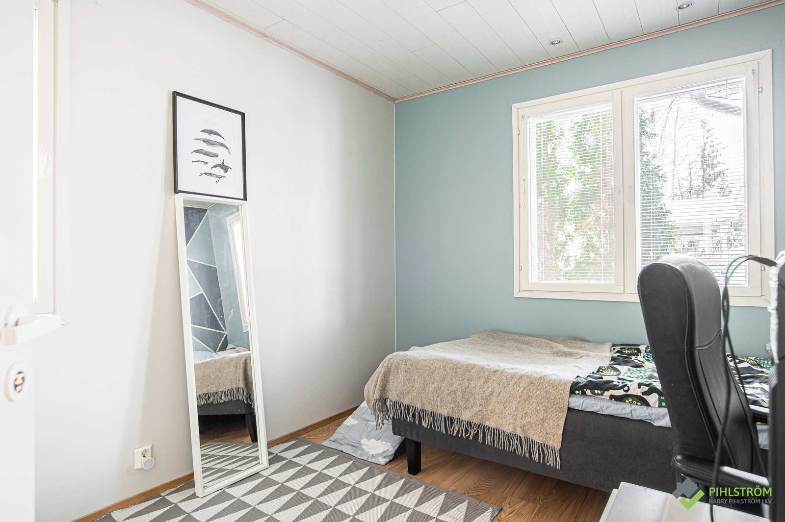 | Makuuhuone | Seinät: maalattu Lattia: laminaatti |