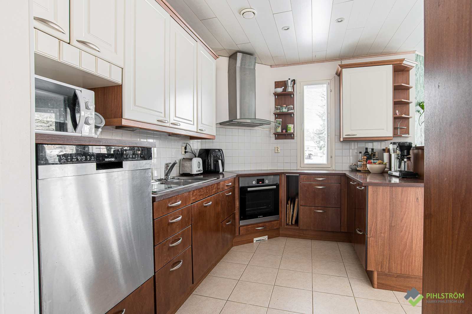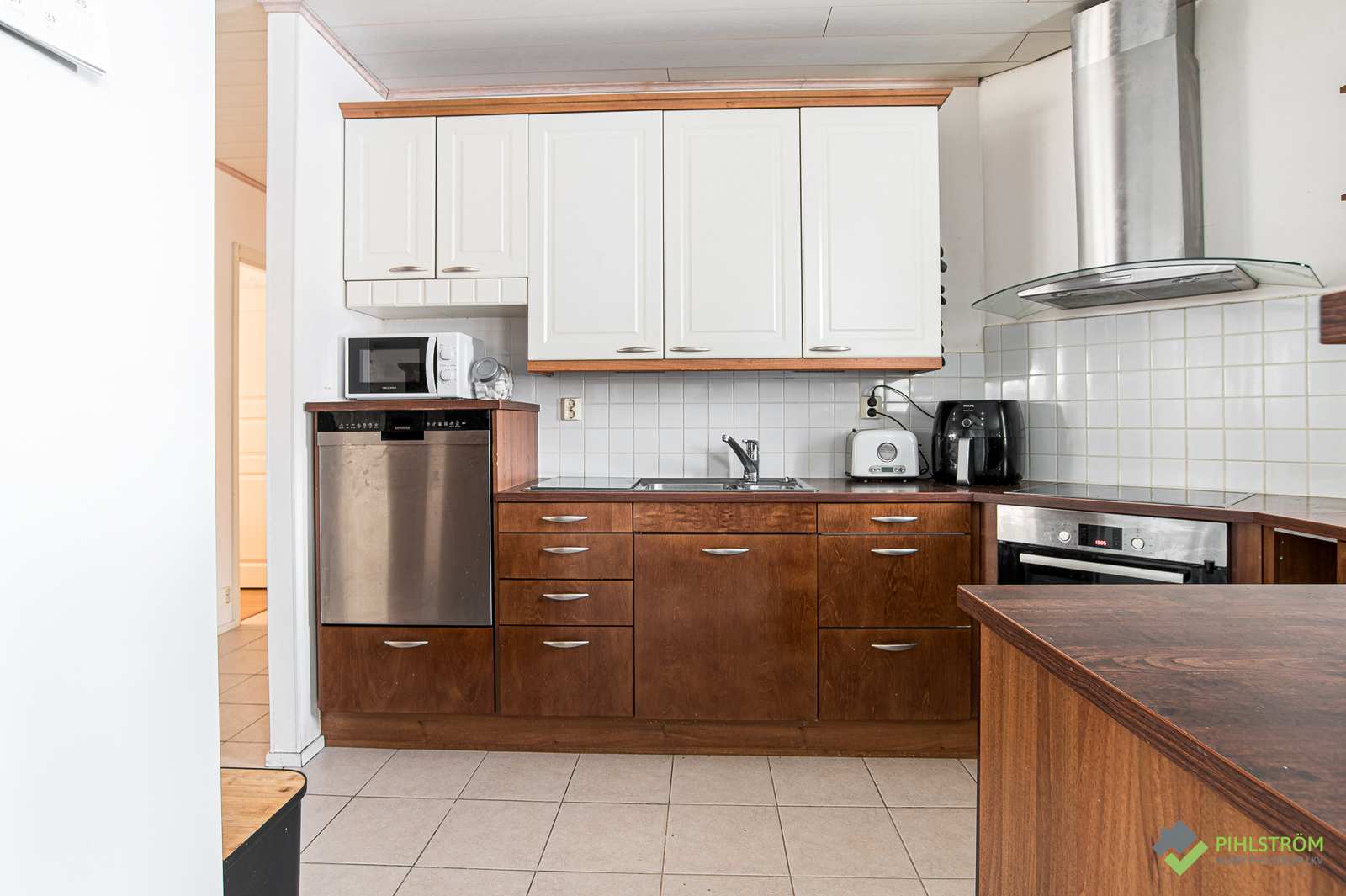 | Keittiön varustus | Jääkaappi ja pakastin: jääkaappi, pakastekaappi Seinät: maalattu Lattia: laatta Muut varusteet: liesituuletin, astianpesukone Liesi/uuni: keraaminen, erillisuuni |