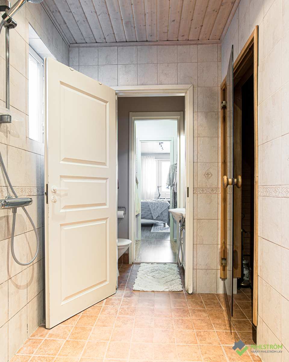 | Kylpyhuone | Seinät: kaakeli Lattia: laatta |