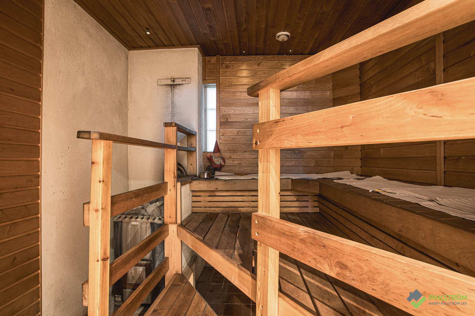 | Saunan pinnat | Seinät: puu Lattia: laatta |