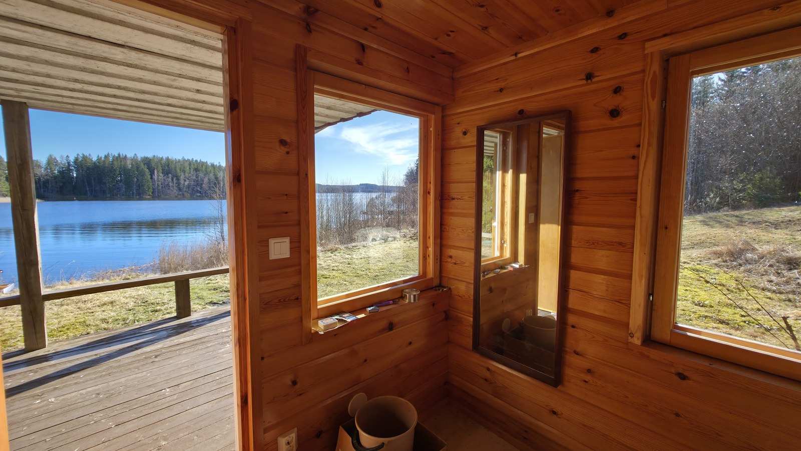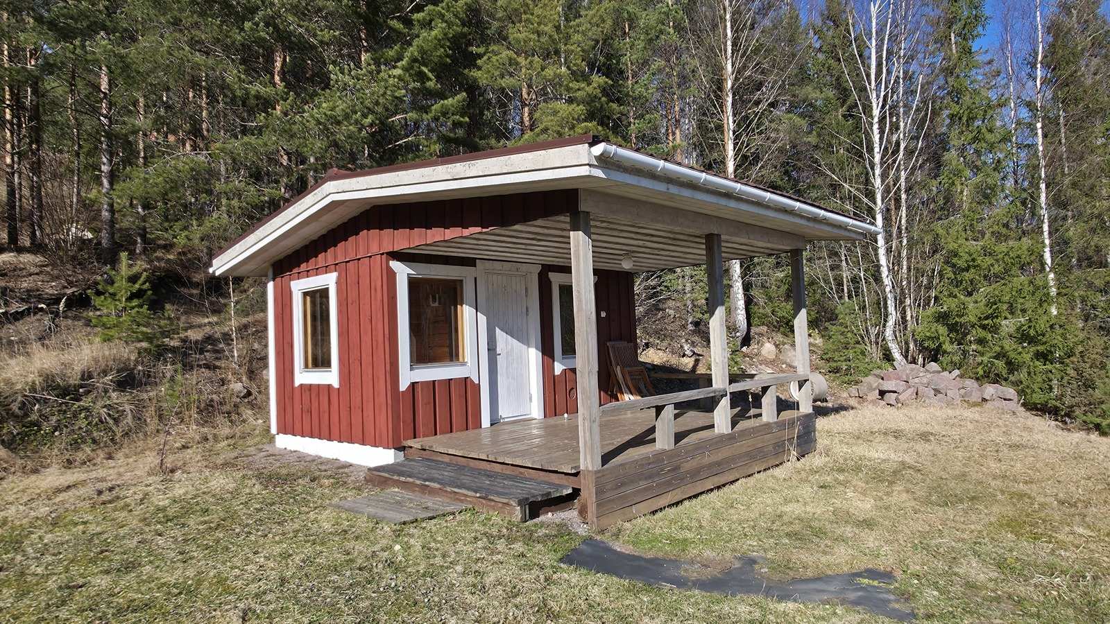 Mökin lisäksi rantasauna n. 13,5m2 (sauna ja pukuhuone).