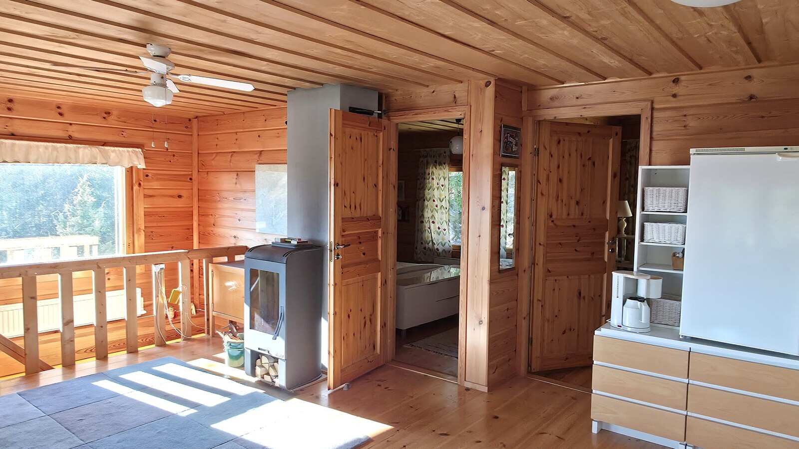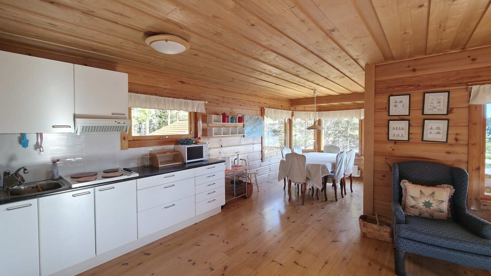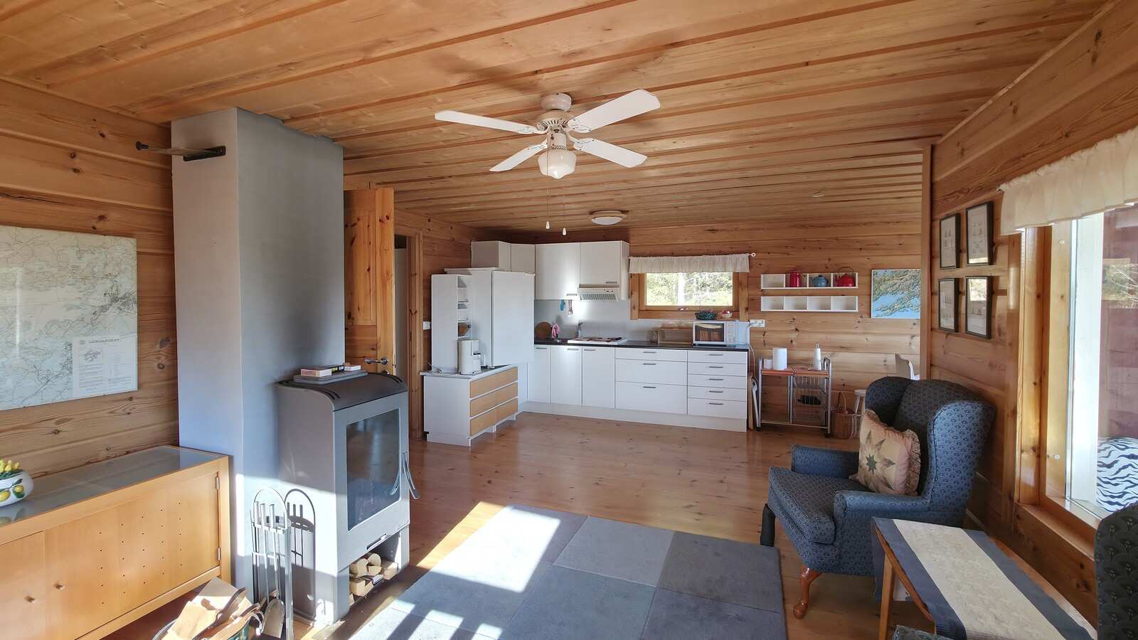 | Keittiön varustus | Jääkaappi ja pakastin: jääkaappi Seinät: puu Lattia: lauta Liesi/uuni: sähköliesi |