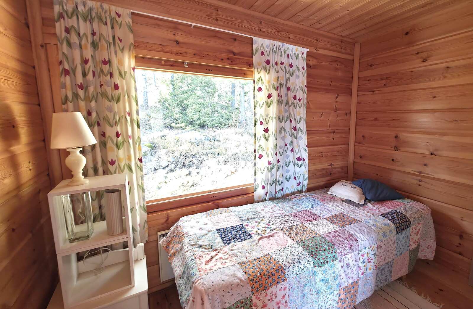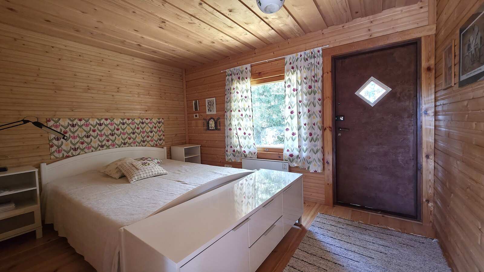 | Makuuhuone | Seinät: puu Lattia: lauta |