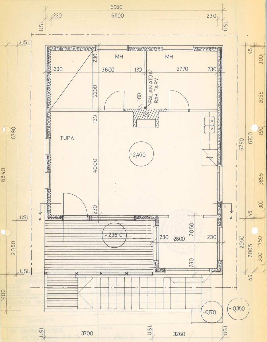 | Rakennusmateriaali | Puu, betoni Yläkerta puurakenteinen ja lautavuorattu. Kellarikerros harkkorakenteinen |