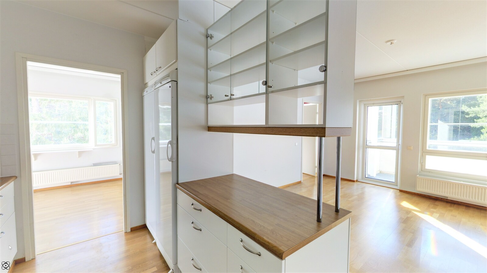 Erittäin rauhallinen sijainti metsän laidalla, kaikista ikkunoista ja parvekkeelta kauniit näkymät puiden latvojen tasalta.