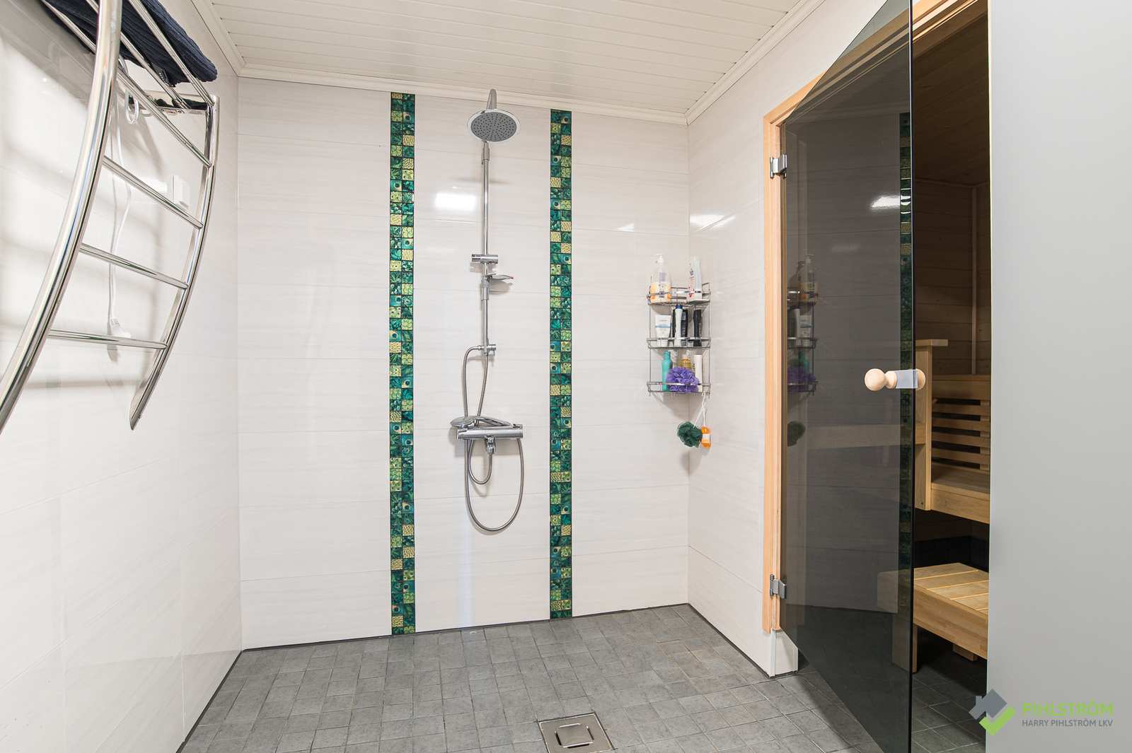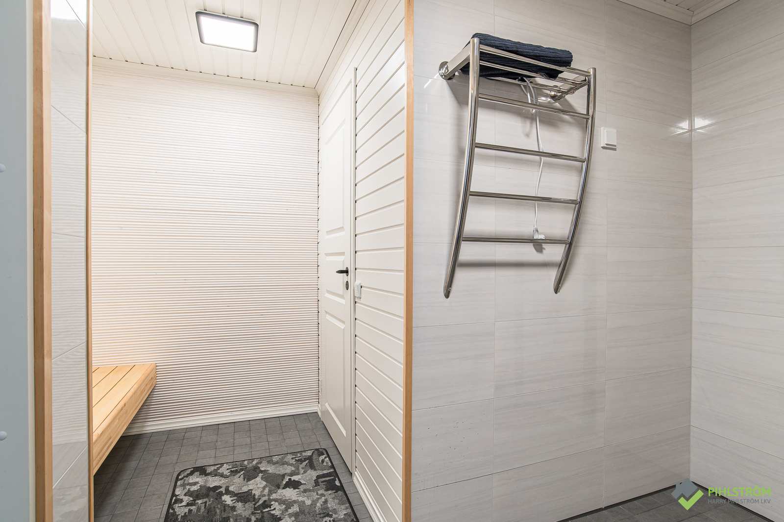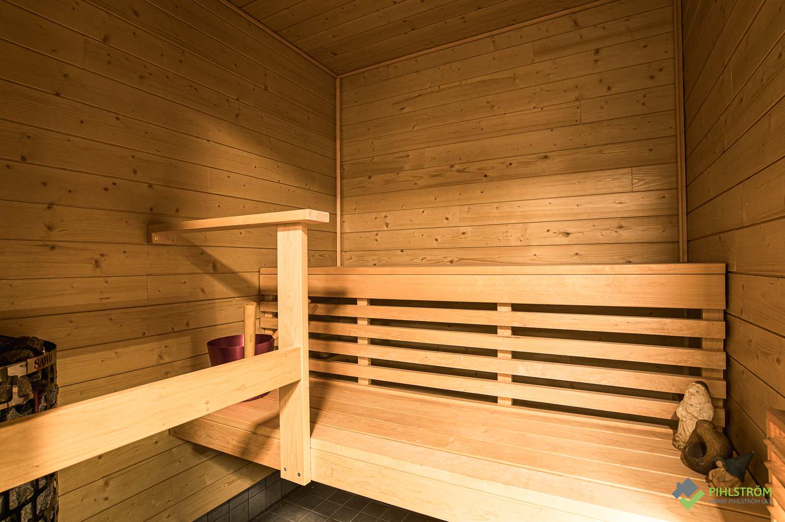 | Saunan pinnat | Seinät: puu Lattia: laatta |