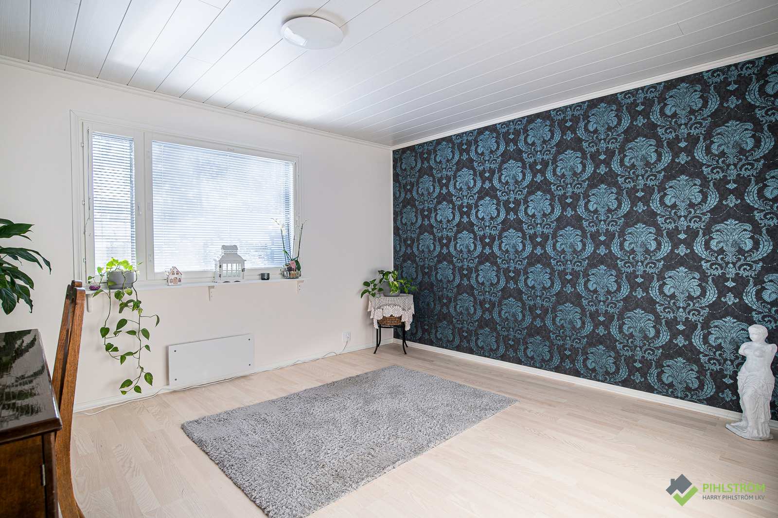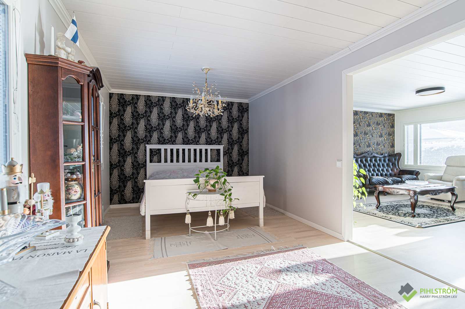 | Makuuhuone | Seinät: maalattu, tapetti Lattia: parketti |