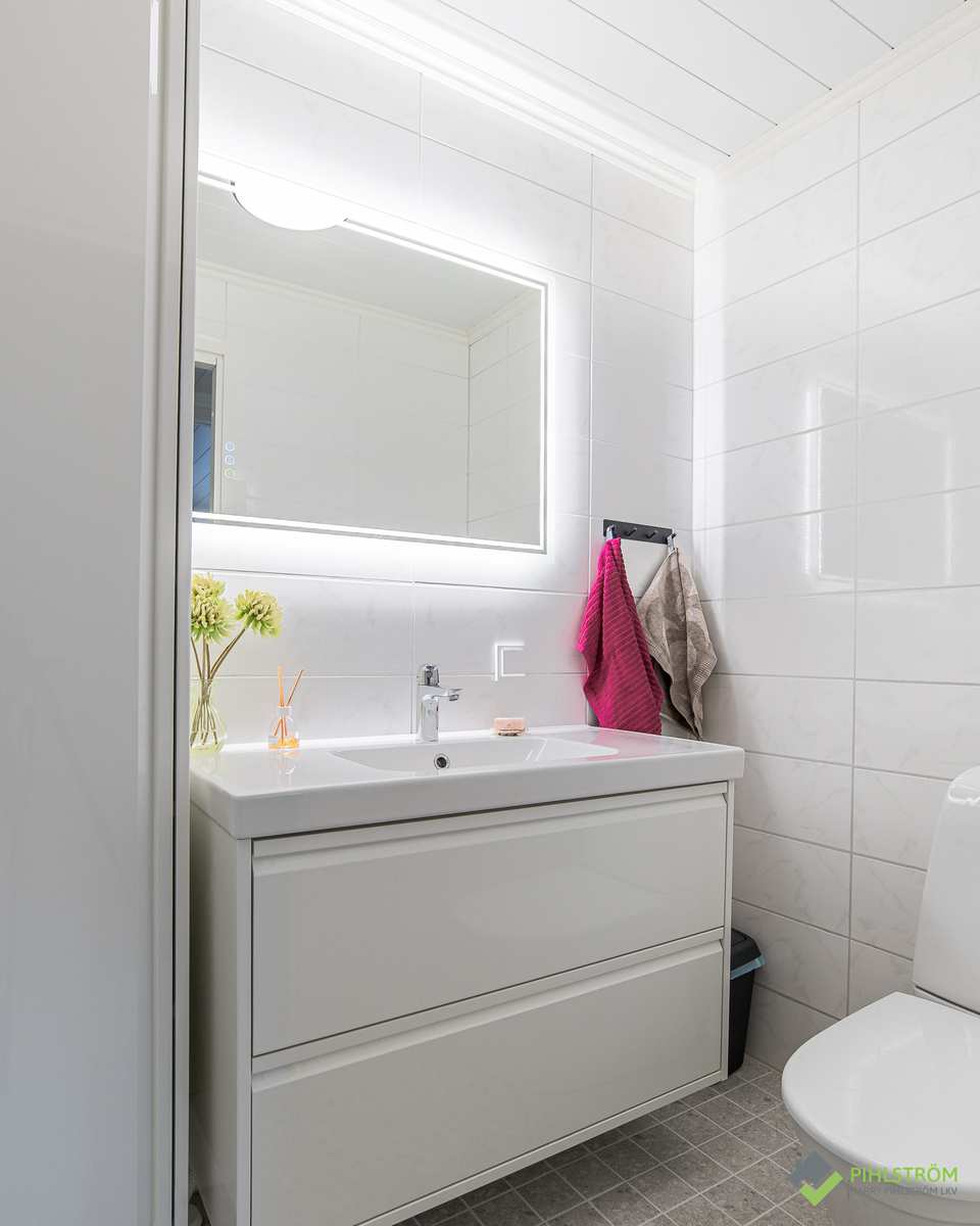 | Kylpyhuone | Seinät: kaakeli Lattia: laatta |
