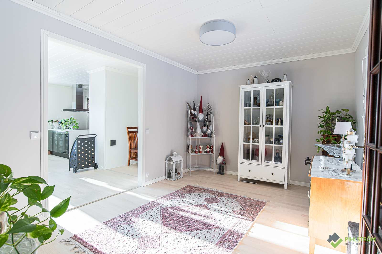 | Olohuone | Tilava olohuone, joka yhdistyy avoimesti keittiö-ruokailutilaan. Seinät: maalattu, tapetti Lattia: parketti |