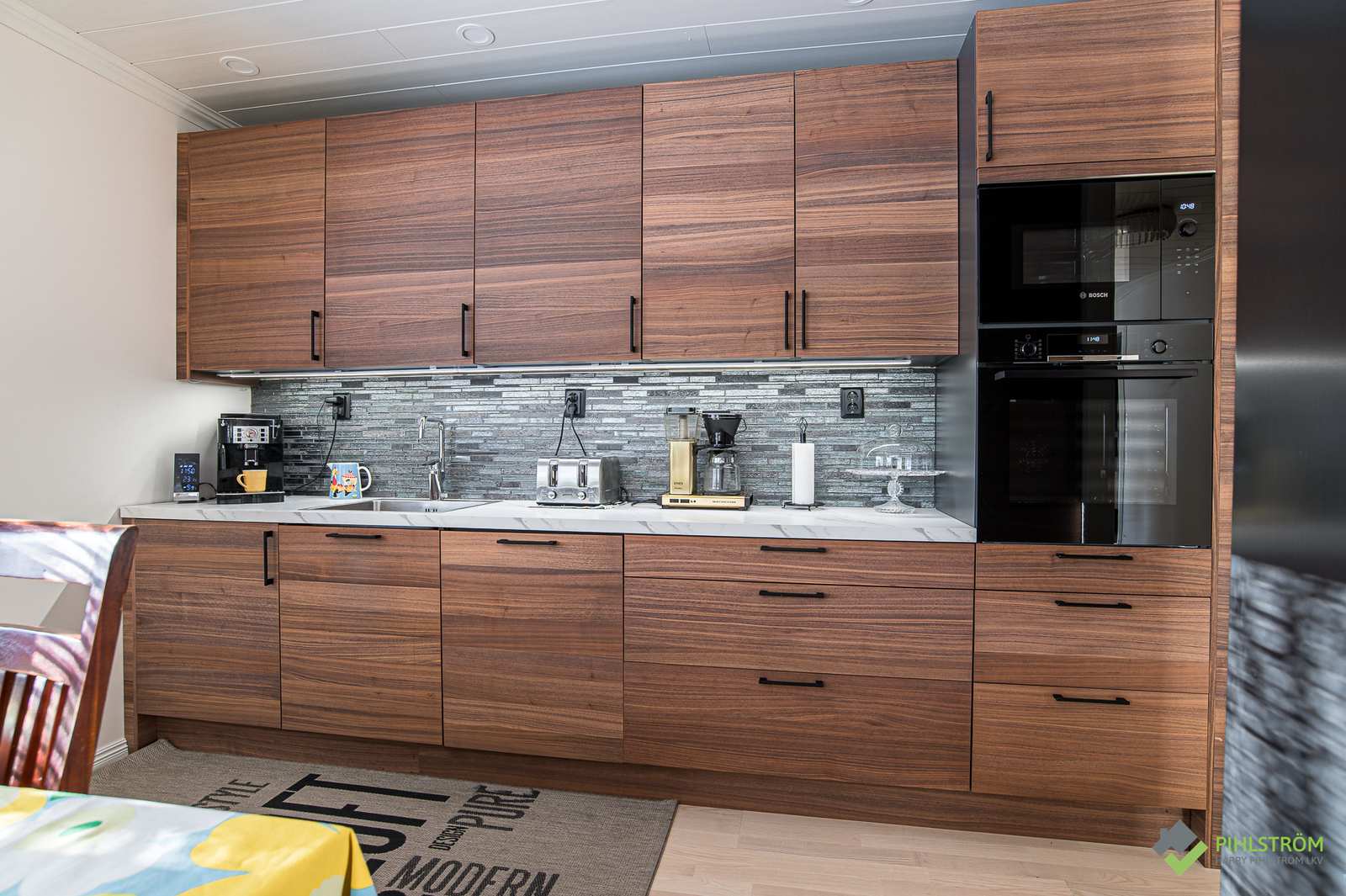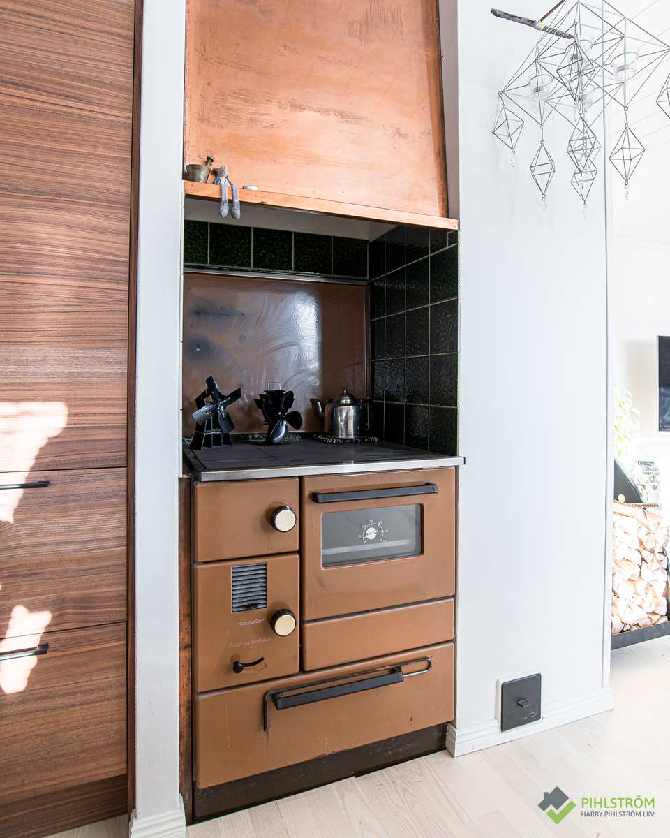 | Keittiön varustus | Jääkaappi ja pakastin: jääkaappi, pakastin Muut varusteet: mikroaaltouuni, astianpesukone, liesituuletin / hormi Seinät: maalattu Lattia: parketti Liesi/uuni: induktio, puuliesi, erillisuuni |