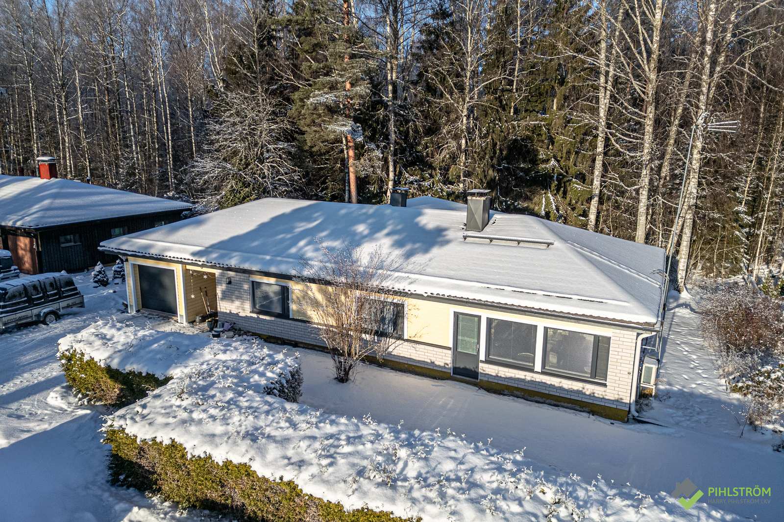 | Tehdyt korjaukset ja remontit | Peltikatto uusittu 2016, Ulkovuoraus-laudoituksen osalta 2024, laajennusosan pinnat 2025, ns. vanhan puolen ikkunat uusittu ja laajennusosan ikkunat kunnostettu, ovet, ikkunapellit, autotallin ovi (sähköinen) 2024, käyttövesiputket 2025, keittiö koneineen 2024, sisäkatot ja seinien säsäverhouslevyt 2024, Tapetointi ja maalaus 2024, väliovet 2025, Parkettilattiat 2024, kph+sauna+wc+pukuhuone 2024, patterit 2026, uuden puolen kph ja wc 2025, yms. |