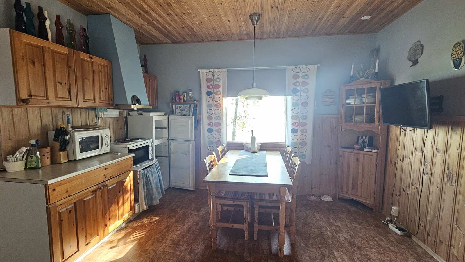 | Keittiön varustus | Jääkaappi ja pakastin: jenkkikaappi Liesi/uuni: sähköliesi |