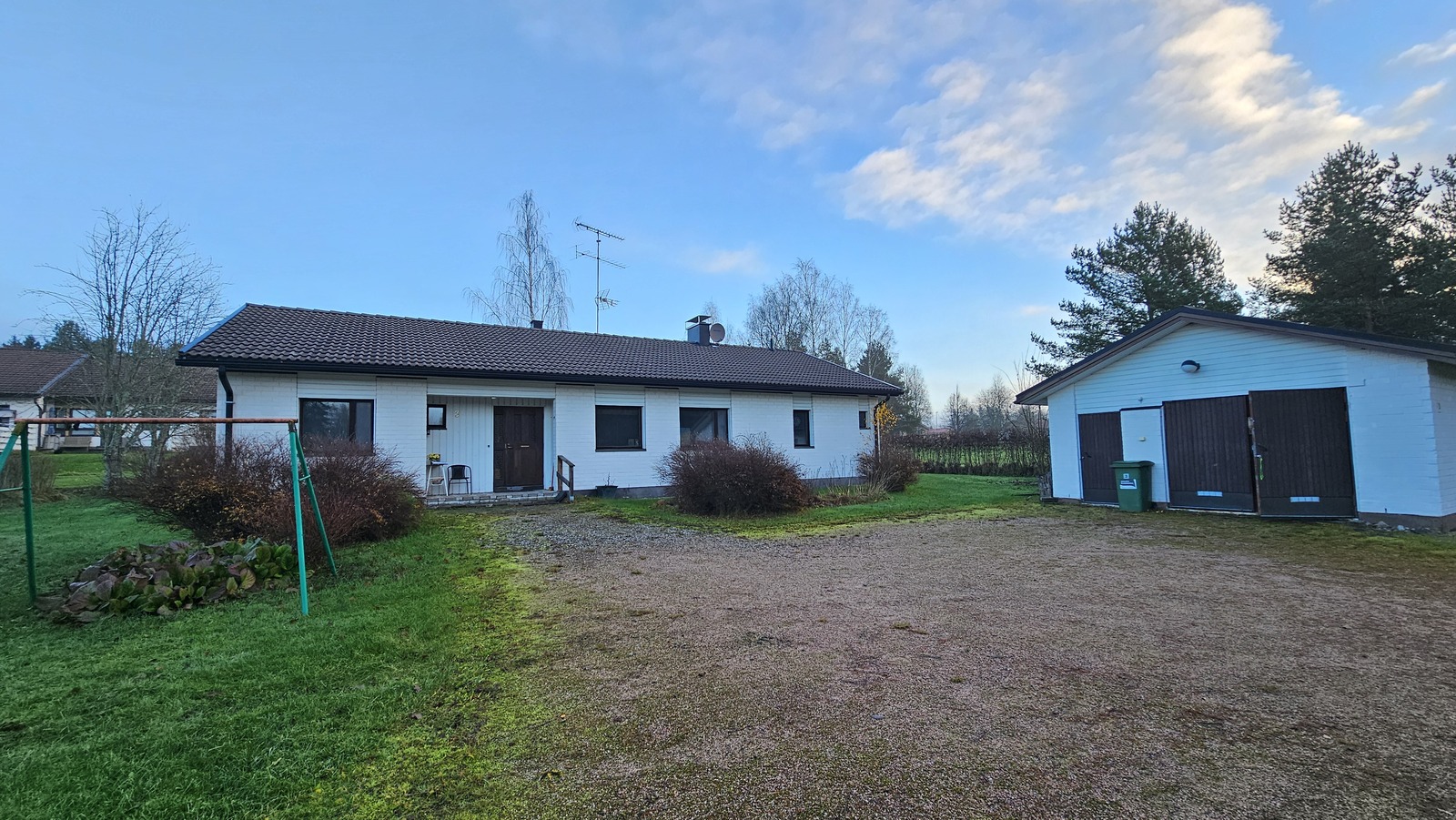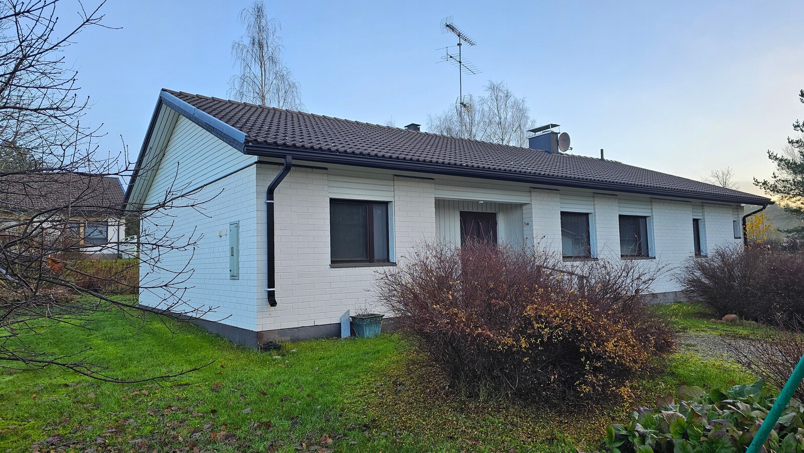 Valkotiiliverhoiltu siistikuntoinen talo, jossa mukavat ja toimivat tilat yhdessä tasossa, 3mh+oh+k+khh+s+kph+2wc+2vh+takkah yms n. 144/156 m2.