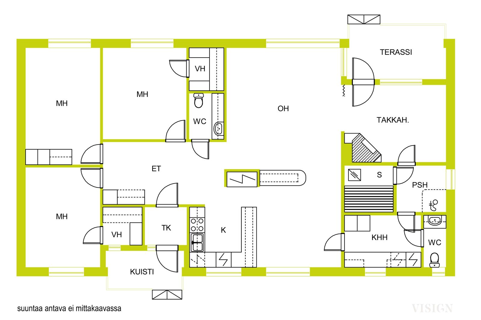 | Huoneistoselitelmä | 3mh+oh+k+khh+s+kph+2wc+2vh+takkah. |