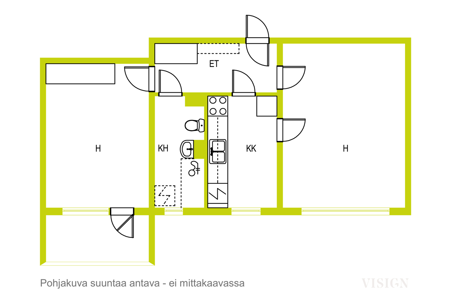 Lohjan Voudinpuistossa sijaitseva mukava kaksio, jossa hyvä pohjaratkaisu ja lasitettu parveke.