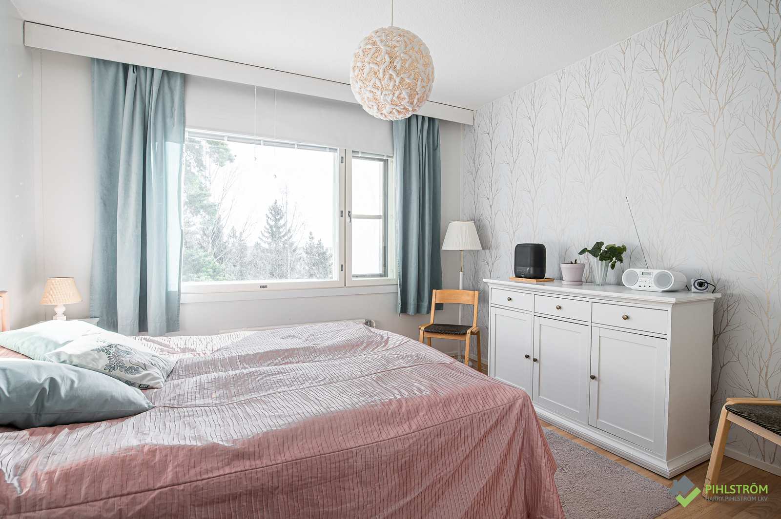 | Makuuhuone | Seinät: maalattu, tapetti Lattia: parketti, laminaatti |