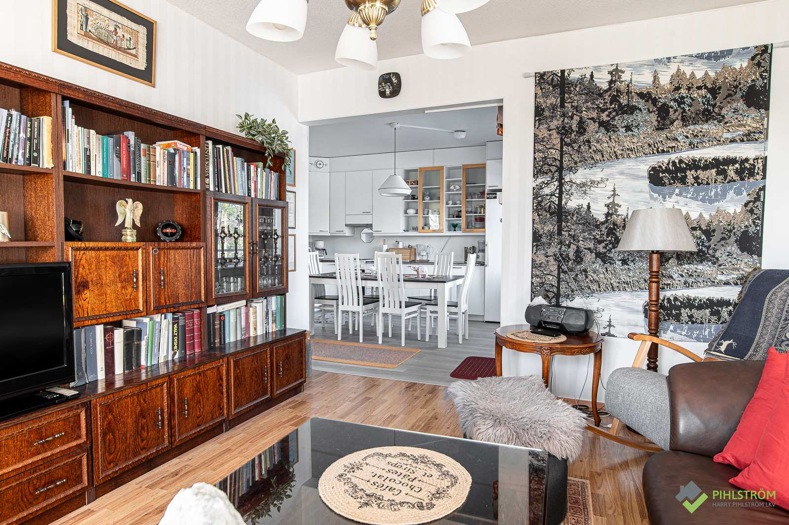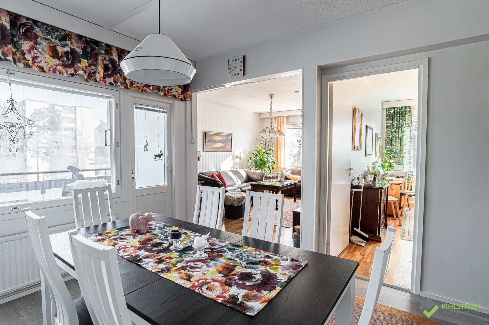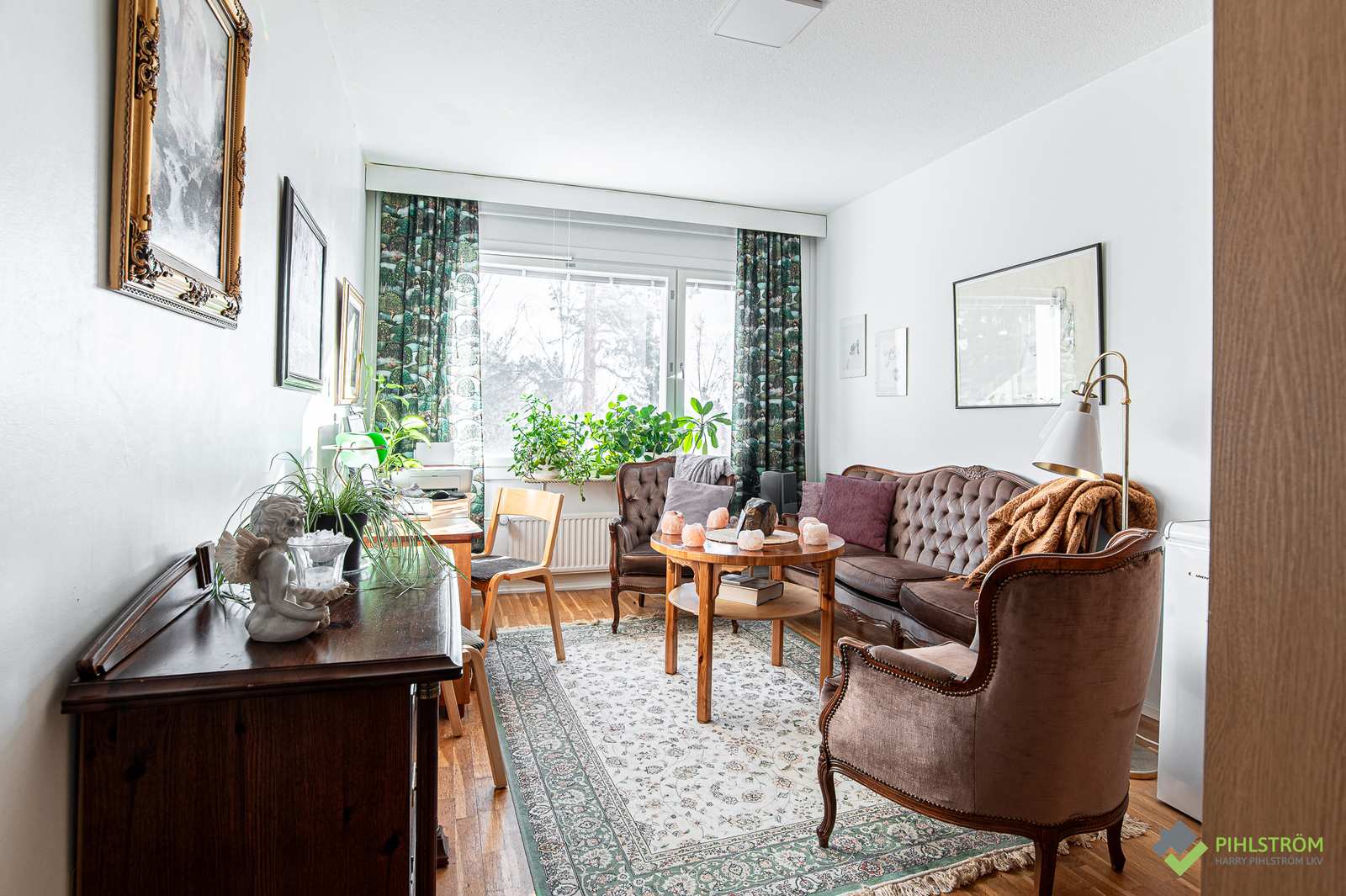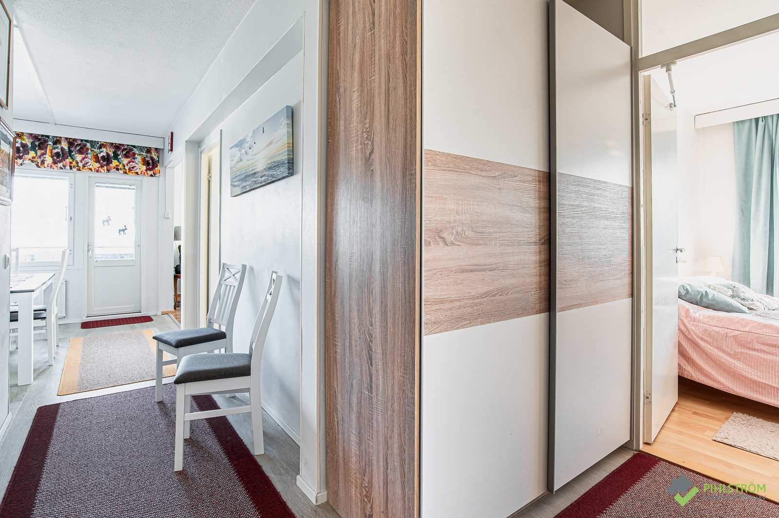 | Olohuone | Seinät: tapetti Lattia: laminaatti |