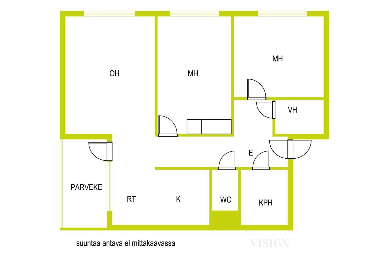 | Keittiön varustus | Jääkaappi ja pakastin: jääkaappi Muut varusteet: liesituuletin, astianpesukone Seinät: maalattu Lattia: vinyyli Liesi/uuni: sähköliesi |