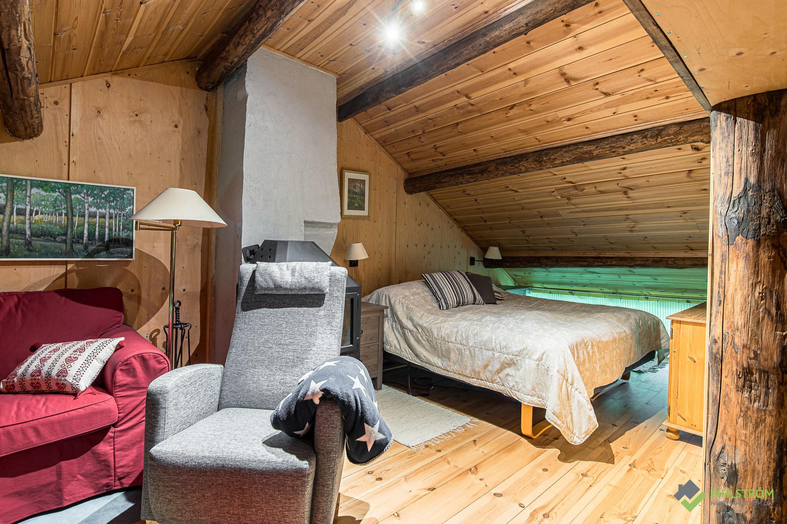 Rakennusmateriaalien kuvaus | Vanha ja idyllinen hirsirakennus, jota saneerattu perinteitä kunnioittaen. |