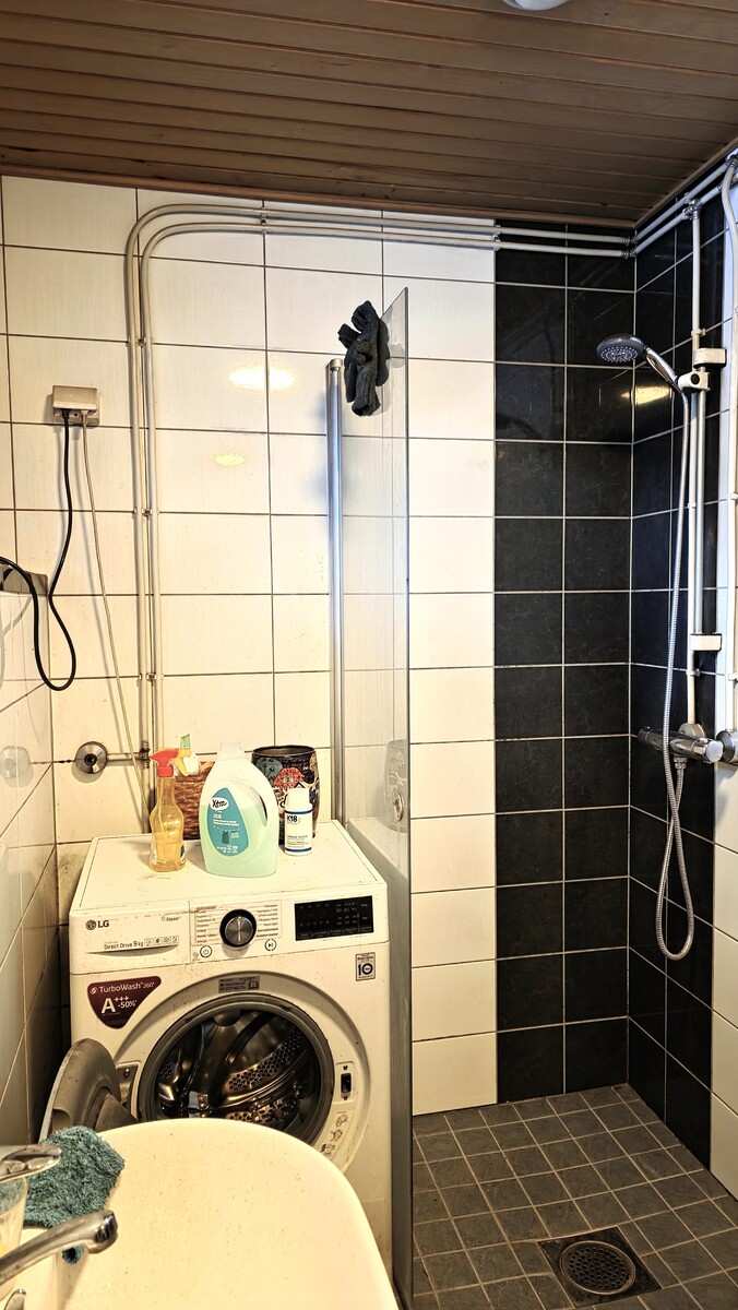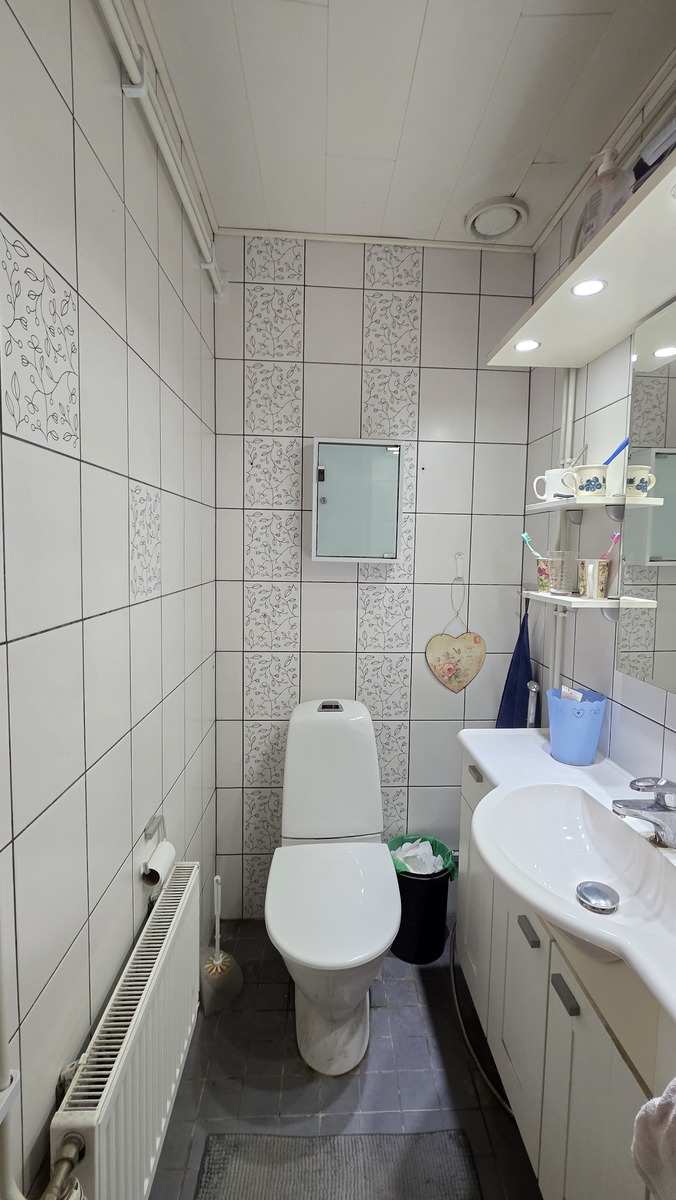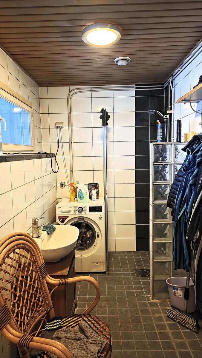 | Kylpyhuone | Varusteet: pesukoneliitäntä, lattialämmitys Seinät: kaakeli Lattia: laatta |