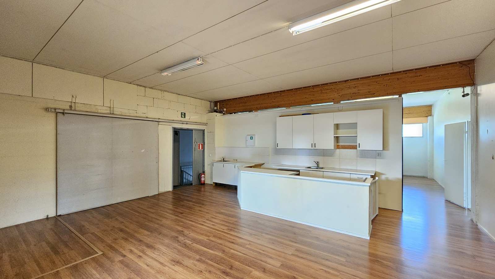 Moneen käyttöön sopivaa siistiä tilaa, rakennuksen 2. kerroksessa näkyvällä paikalla radan varrella tasoristeyksen kohdalla.