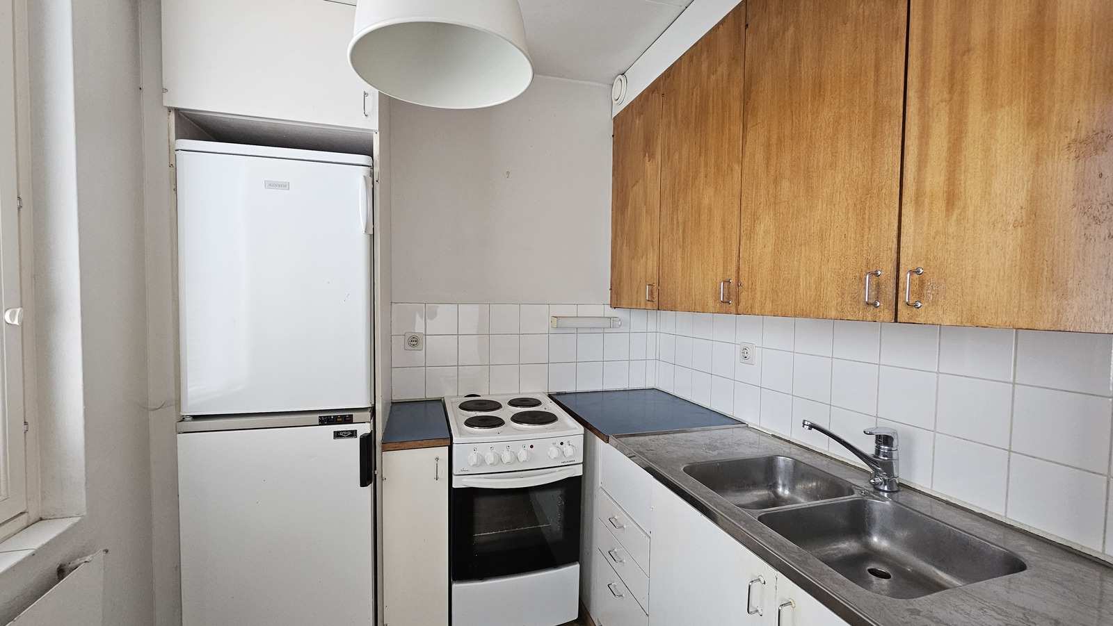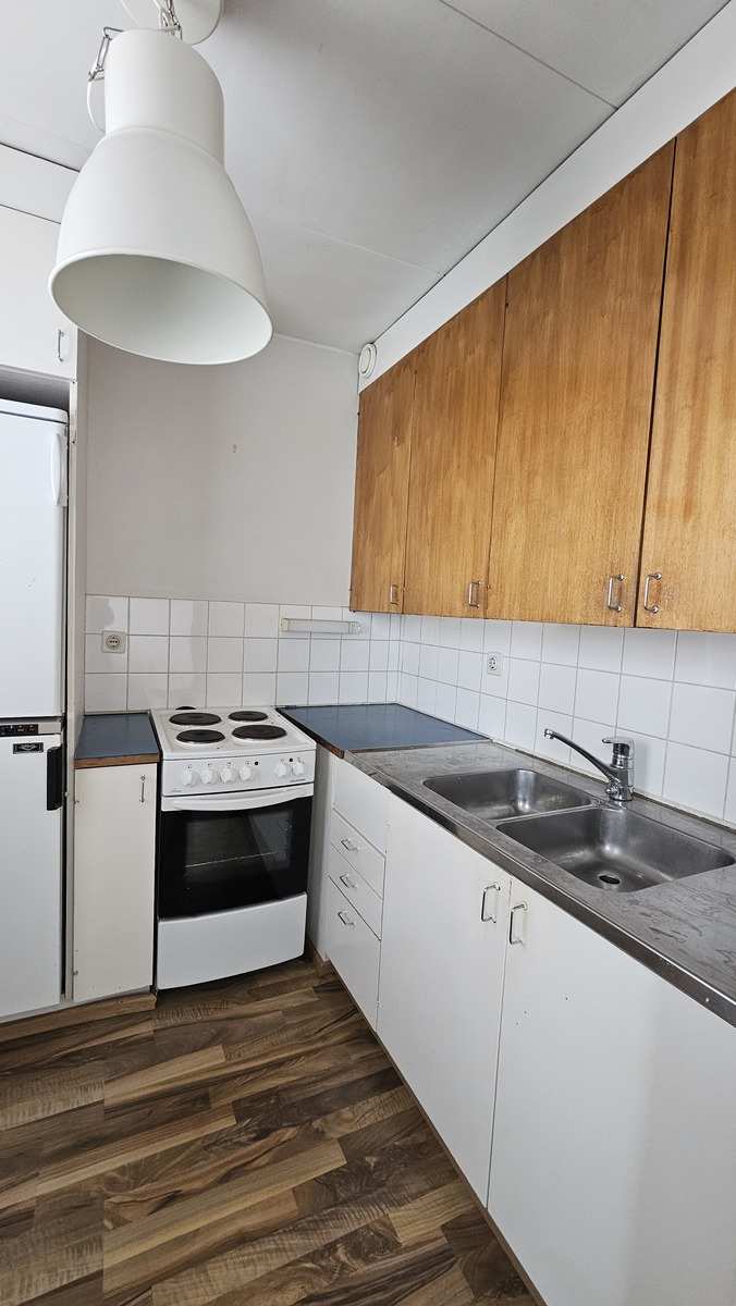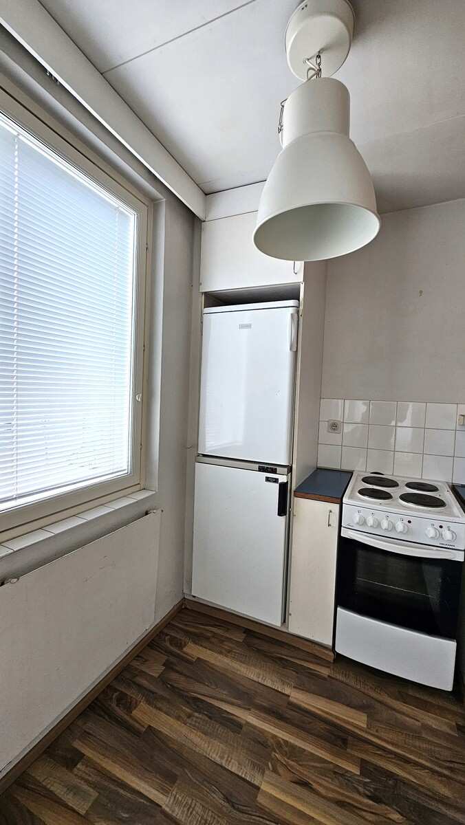 | Keittiön varustus | Jääkaappi ja pakastin: jääkaappi, pakastin Lattia: laminaatti Seinät: maalattu Liesi/uuni: sähköliesi |