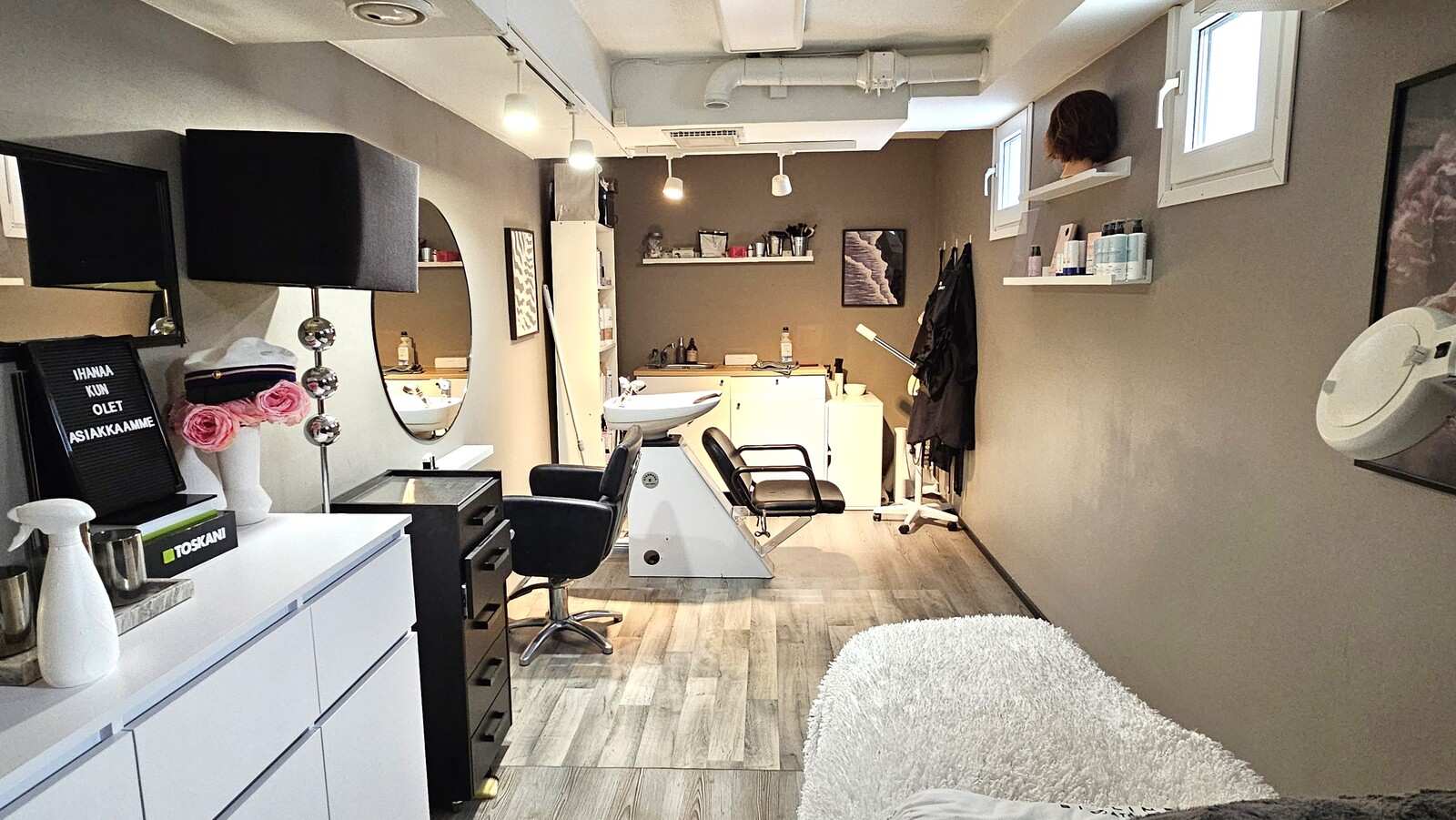 Nahkurinkatu 10 kellarikerroksen tila. Erittäin siistit tilat , jotka ovat nyt olleet kauneushoitolan käytössä, mutta soveltuvat toki moneen muuhunkin käyttöön.